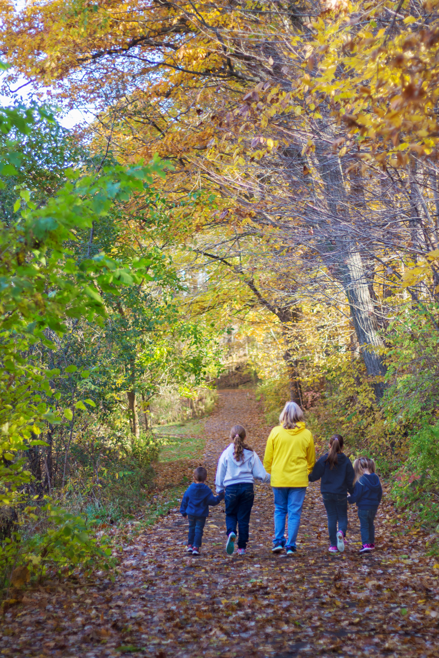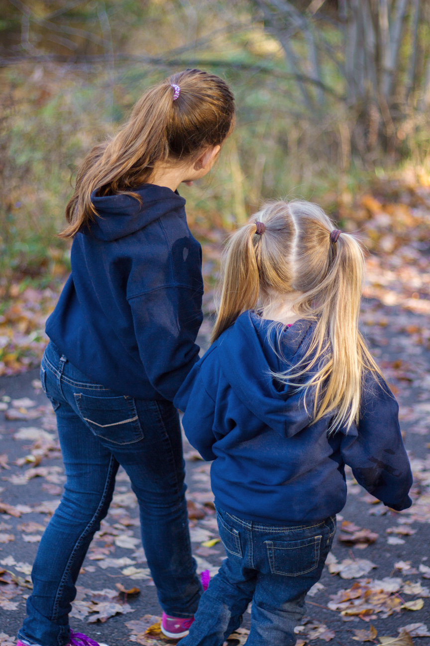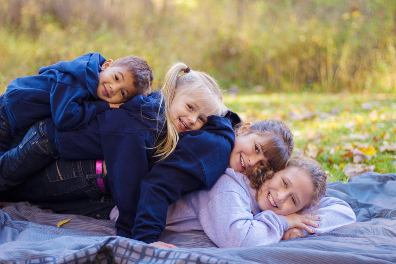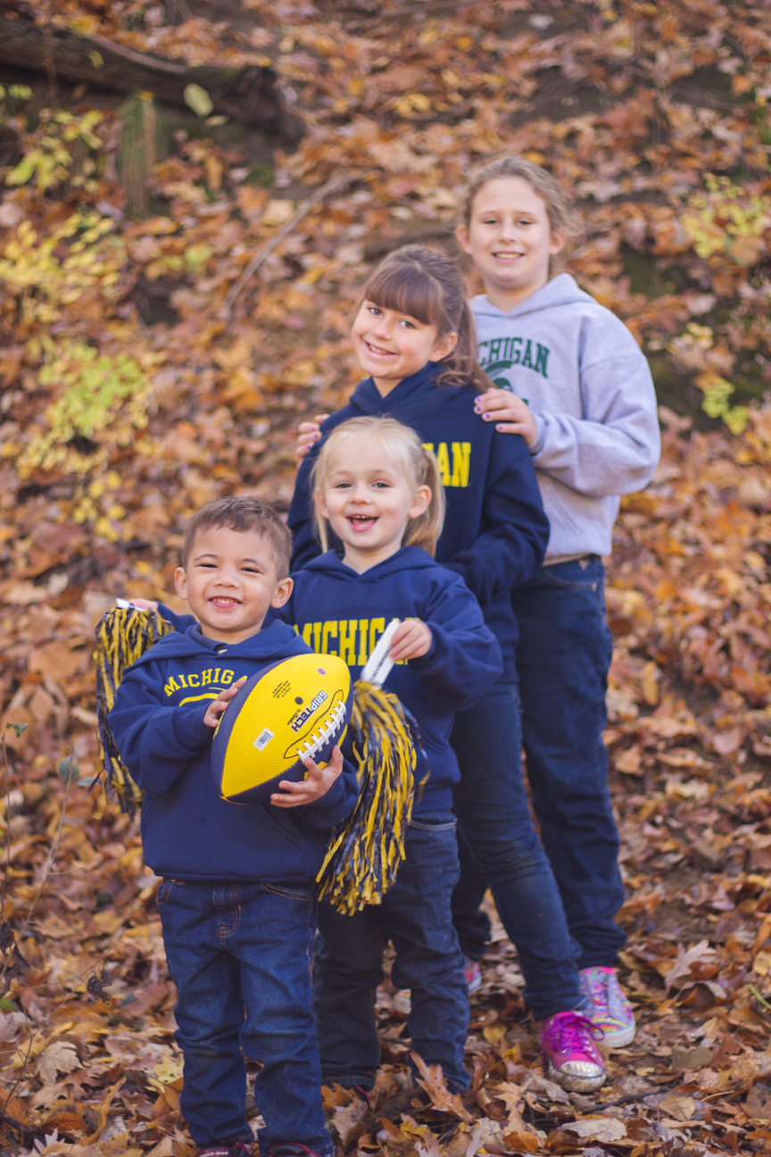 We had cancelled once due to rain that ended up not really coming until later. So we got together the next day instead and it was just such a beautiful sunny and colorful fall day. Of course that meant many other people were out enjoying the day and taking photos as well. It was a bit of an adventure wrangling a dog, 4 kids and trying to give everyone around us some space! The kids quickly got bored with having their photos taken and found things to search for, climb and throw. And you will notice there is still love even with some team rivalry going on! 😉