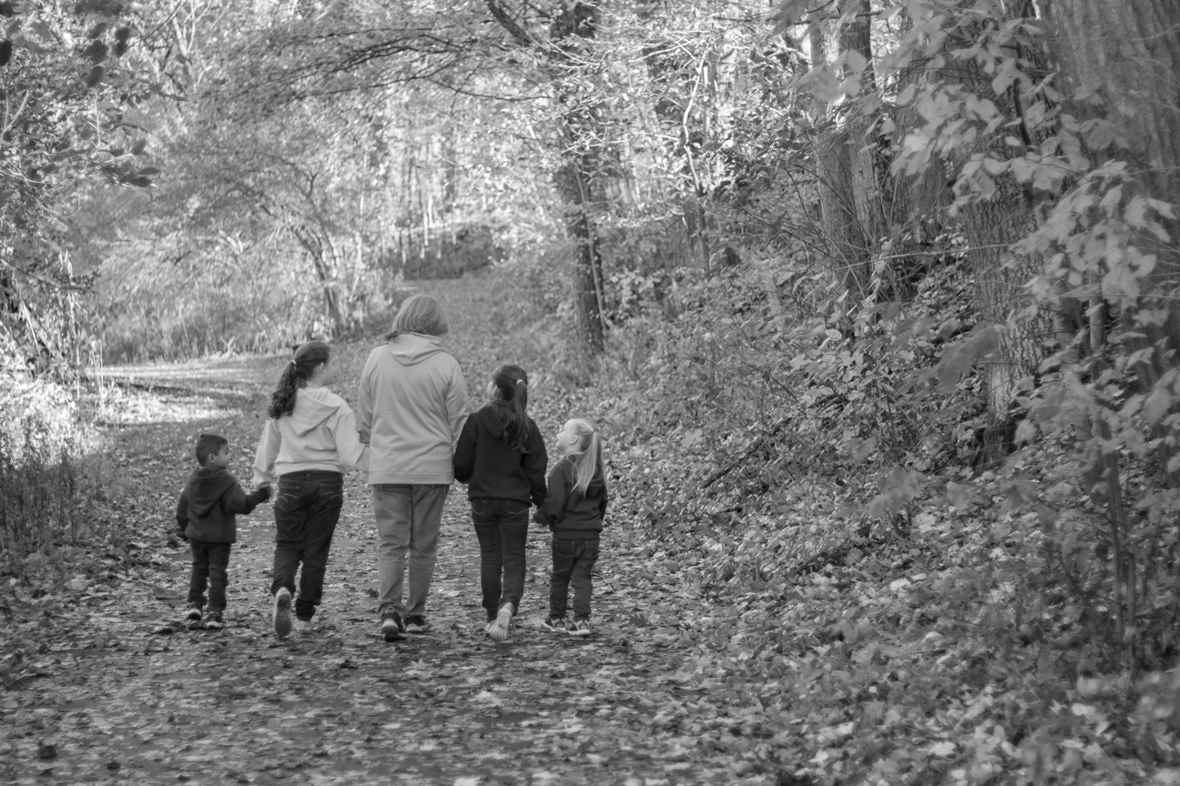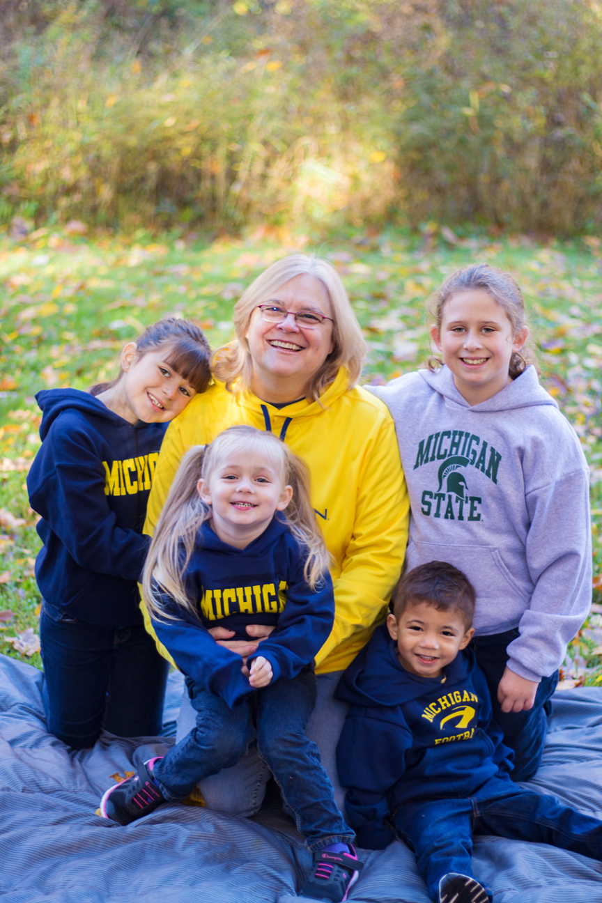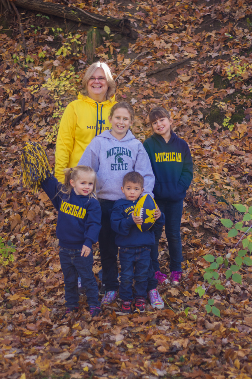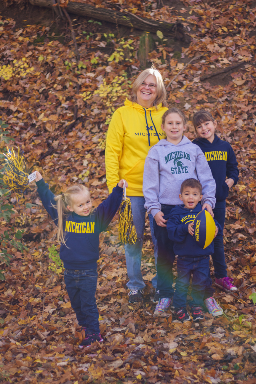 We had cancelled once due to rain that ended up not really coming until later. So we got together the next day instead and it was just such a beautiful sunny and colorful fall day. Of course that meant many other people were out enjoying the day and taking photos as well. It was a bit of an adventure wrangling a dog, 4 kids and trying to give everyone around us some space! The kids quickly got bored with having their photos taken and found things to search for, climb and throw. And you will notice there is still love even with some team rivalry going on! 😉
